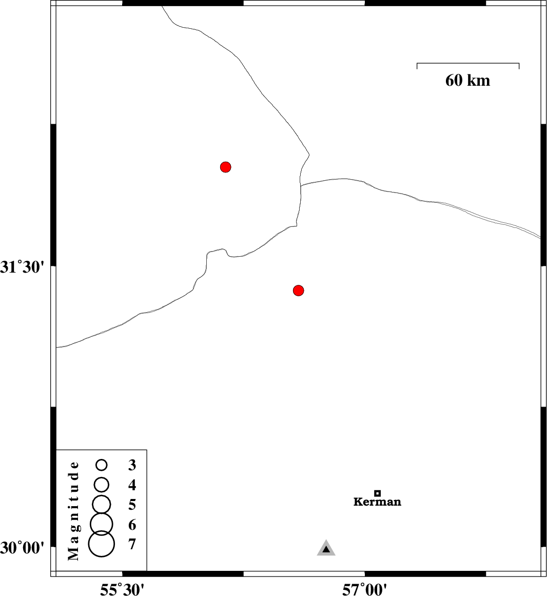 | 2016/08/28 | 04:23:09.9 | 08:53:09.9 | 31.369 | 56.589 | 30 | ML:3 | Kerman Province, 24 km North-West of Ravar | ||
