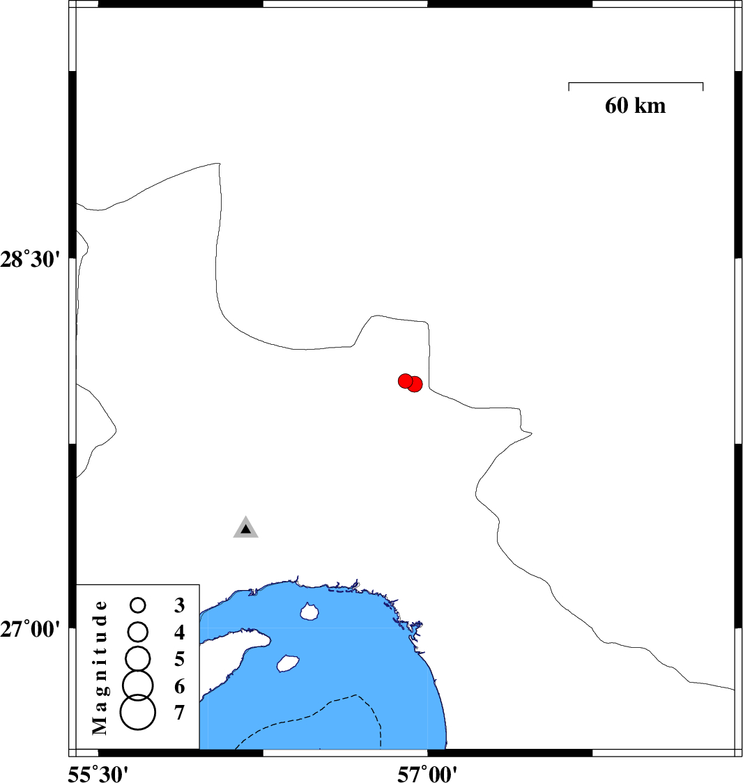 | 2016/09/03 | 00:09:29.1 | 04:39:29.1 | 28.004 | 56.898 | 15 | ML:3 | Hormozgan Province, 78 km -West of Kahnuj | ||