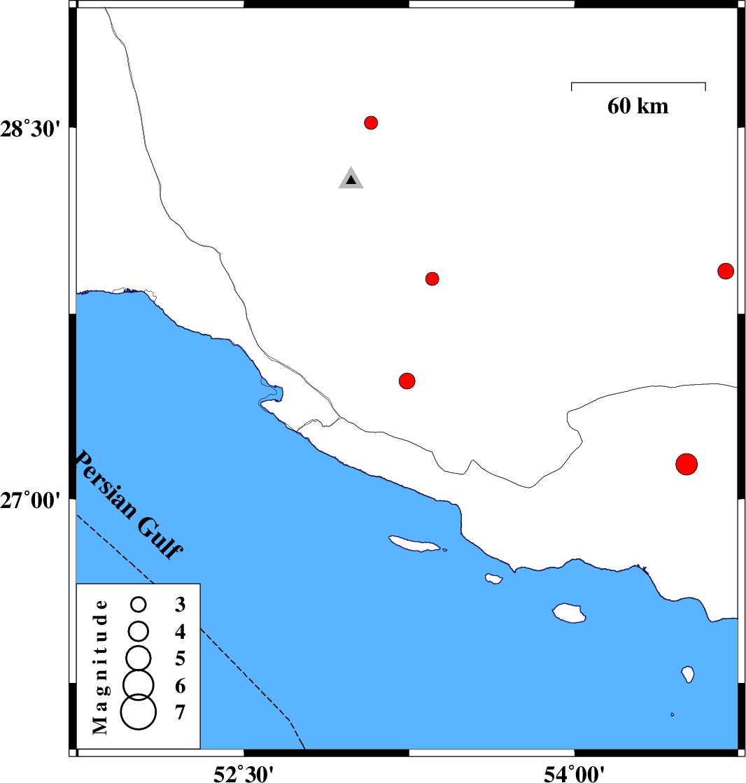 | 2016/09/08 | 19:29:34.1 | 23:59:34.1 | 27.479 | 53.24 | 14 | ML:3.2 | Fars Province, 18 km North of Lamerd | ||