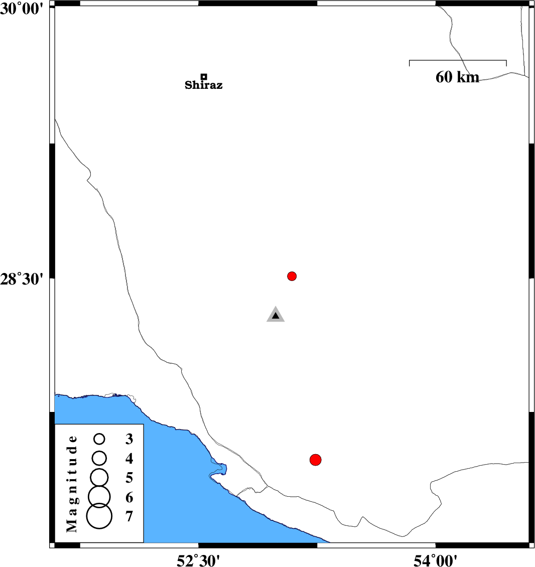 | 2016/09/08 | 19:29:34.1 | 23:59:34.1 | 27.479 | 53.24 | 14 | ML:3.2 | Fars Province, 18 km North of Lamerd |