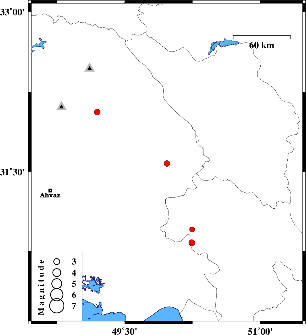 | 2016/09/17 | 12:01:45.6 | 16:31:45.6 | 32.061 | 49.196 | 14 | ML:3 | Khoozestan Province, 17 km North-West of Masjed Soleyman | ||