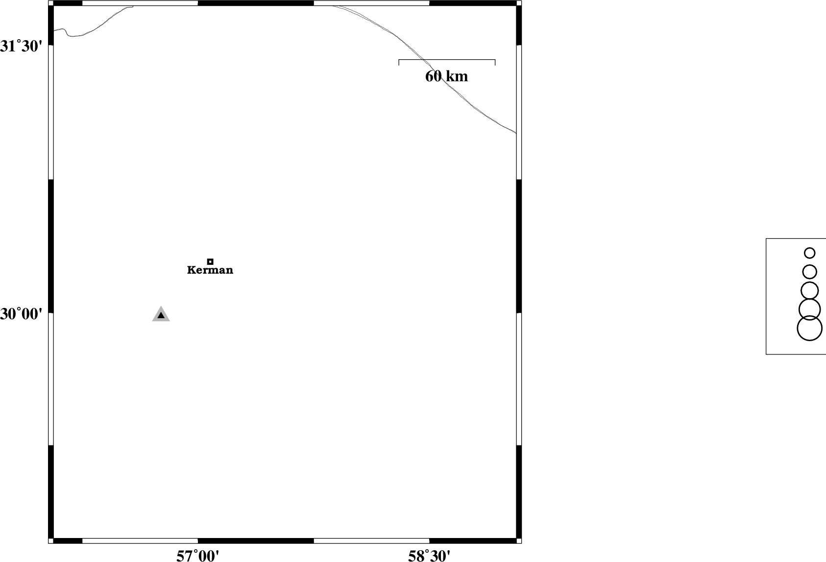2016/09/18 | 11:14:26.1 | 15:44:26.1 | 30.219 | 57.563 | 16 | ML:2.6 | Kerman Province, 47 km -East of Kerman | ||