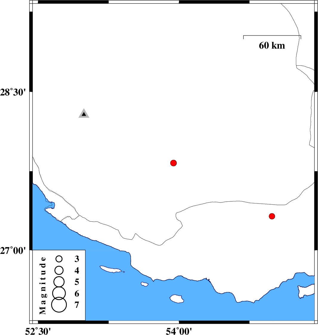| 2016/09/26 | 08:49:02.0 | 12:19:02.0 | 27.827 | 53.941 | 18 | ML:2.9 | Fars Province, 42 km North-West of Lar |