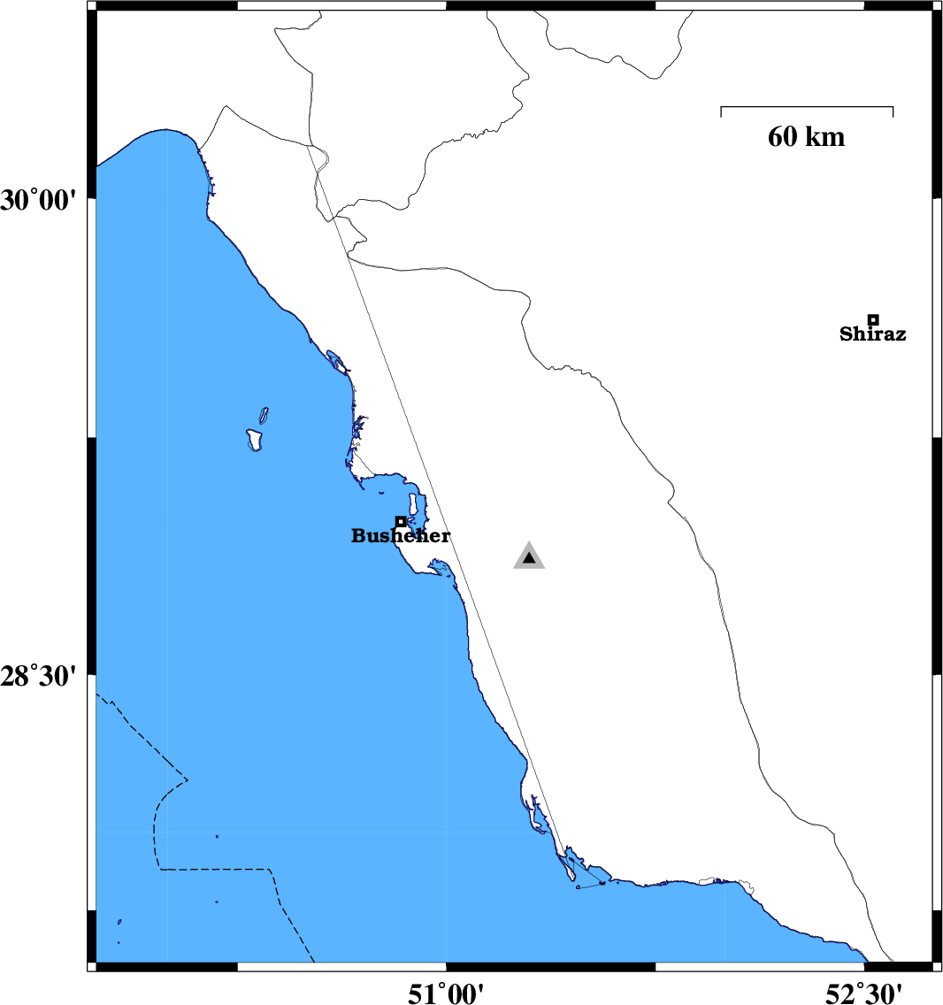 | 2016/09/27 | 11:11:47.8 | 14:41:47.8 | 29.671 | 51.478 | 8 | ML:4 | Fars Province, 18 km -West of Kazerun |