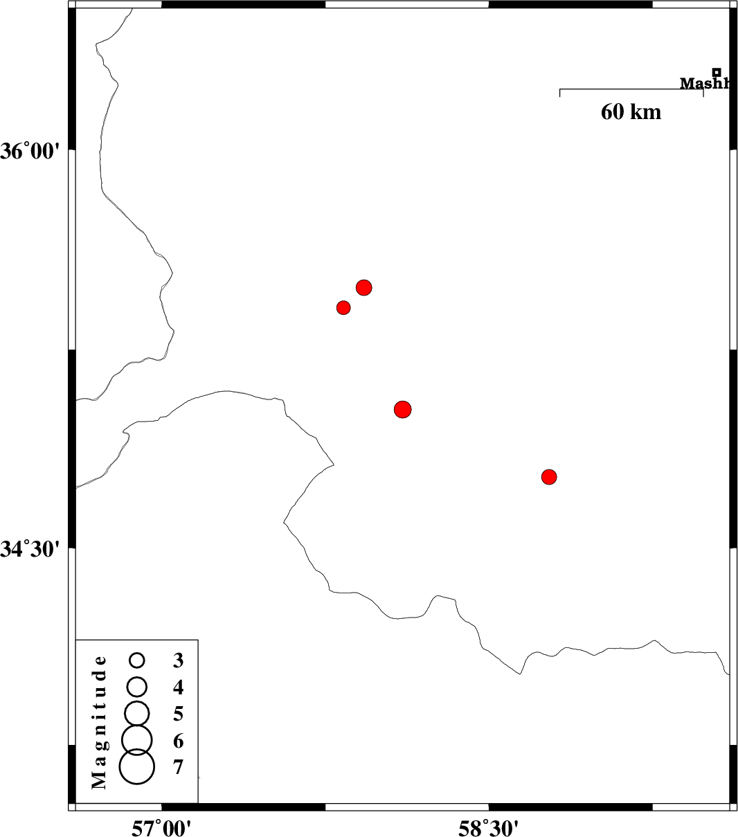 | 2016/09/29 | 03:36:54.3 | 07:06:54.3 | 35.408 | 57.833 | 14 | ML:2.8 | Khorasan(center) Province, 20 km North-West of Bardeskan | ||