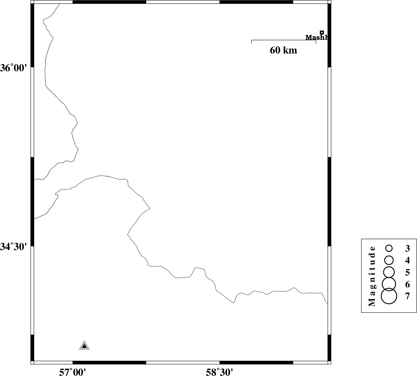 2016/09/29 | 03:36:54.3 | 07:06:54.3 | 35.408 | 57.833 | 14 | ML:2.8 | Khorasan(center) Province, 20 km North-West of Bardeskan | ||
