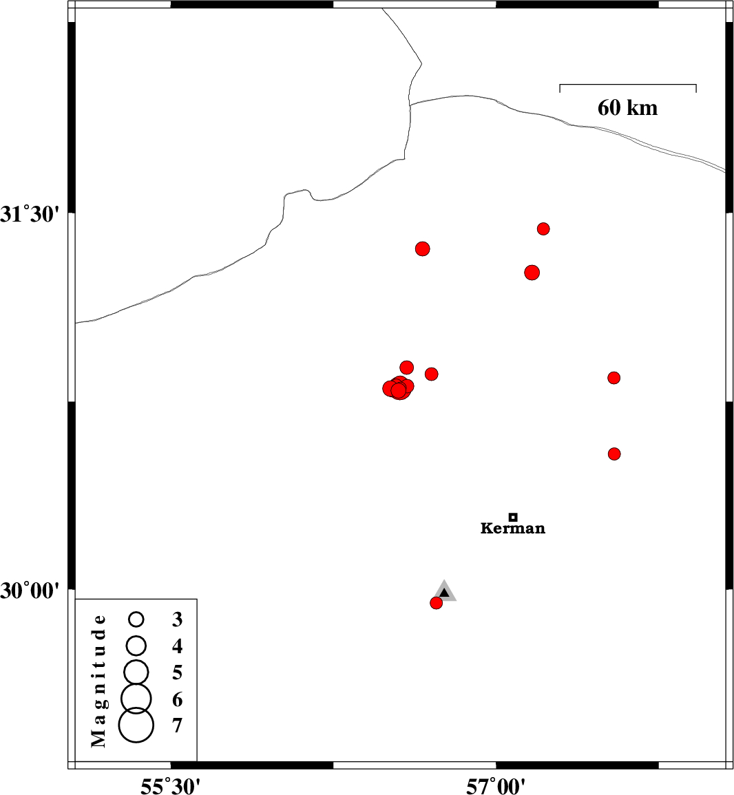 2016/10/13 22:35:08.8 02:05:08.8 30.54157.54514 ML:2.5 Kerman Province, 53 km North-East of Kerman