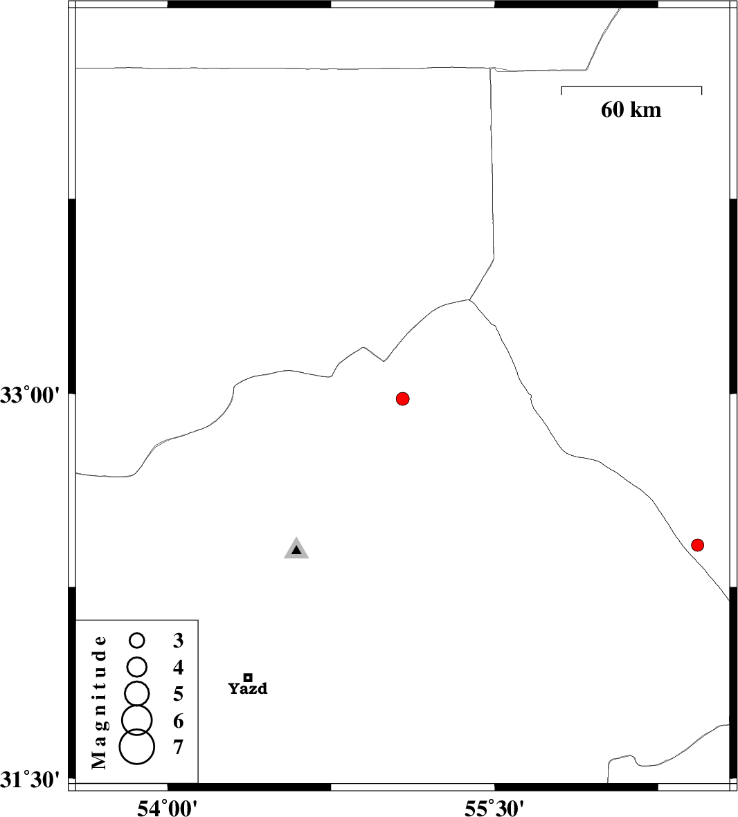 | 2016/10/31 | 09:06:33.6 | 12:36:33.6 | 32.98 | 55.078 | 11 | ML:2.7 | Yazd Province, 156 km North-West of Bafq | ||
