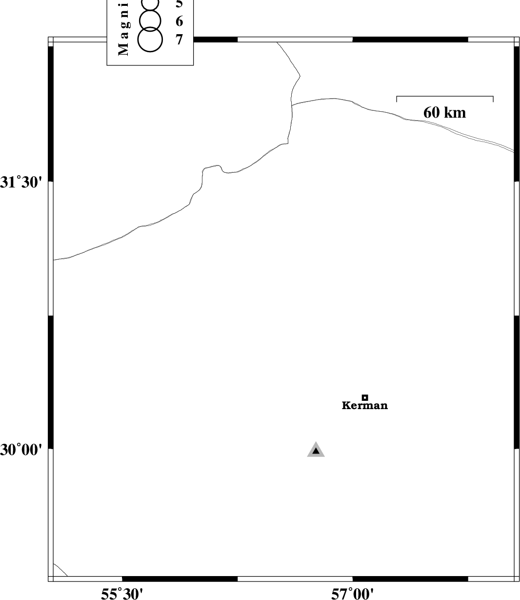 | 2016/10/26 | 19:12:46.8 | 22:42:46.8 | 30.765 | 56.863 | 15 | ML:3.6 | Kerman Province, 29 km -East of Zarand |