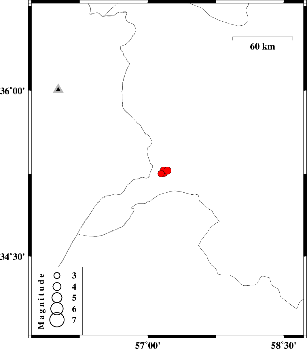 | 2016/11/15 | 04:37:10.6 | 08:07:10.6 | 35.278 | 57.218 | 14 | ML:3.7 | Khorasan(center) Province, 67 km -West of Bardeskan | ||