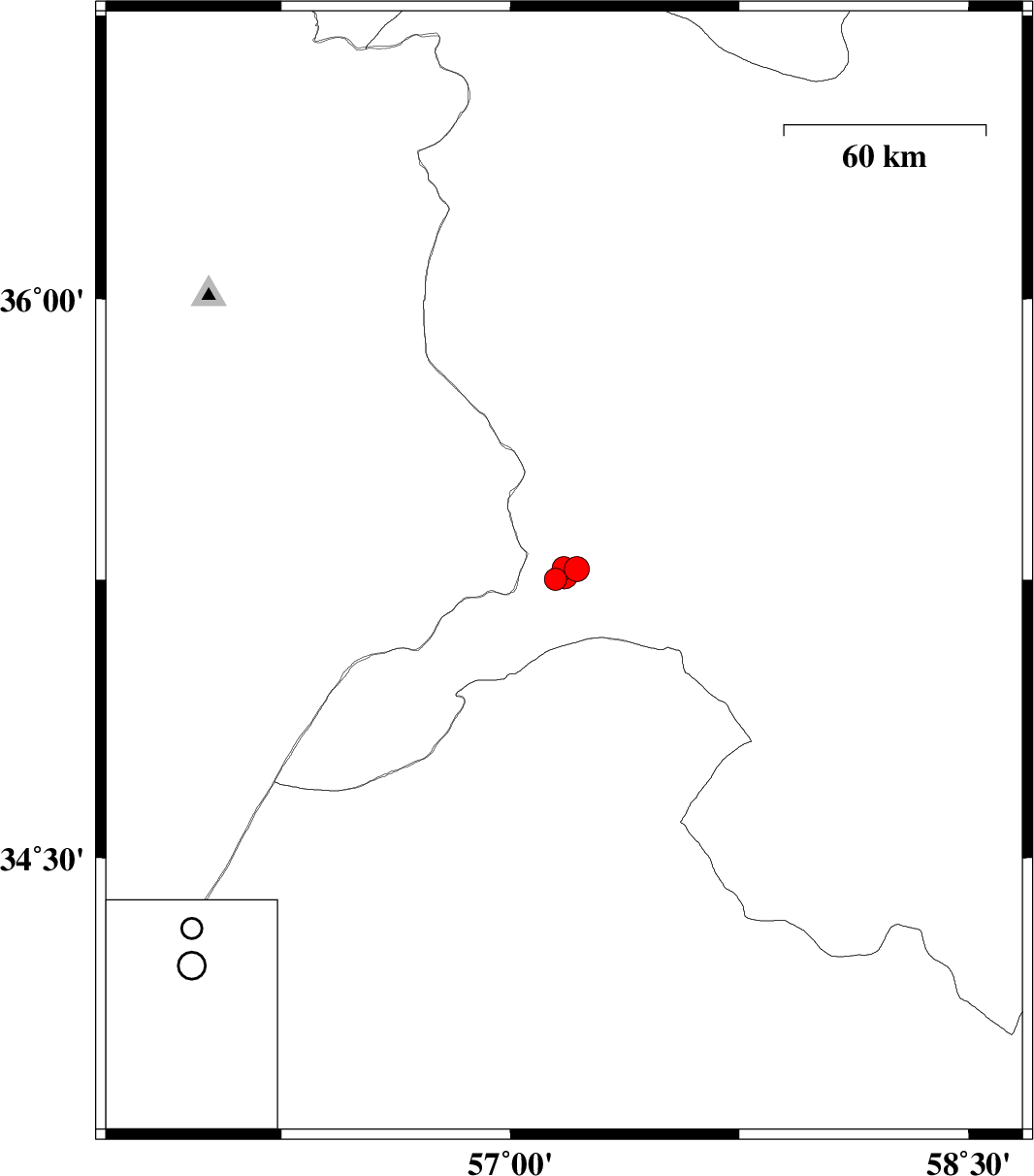 | 2016/11/15 | 04:37:10.6 | 08:07:10.6 | 35.278 | 57.218 | 14 | ML:3.7 | Khorasan(center) Province, 67 km -West of Bardeskan | ||