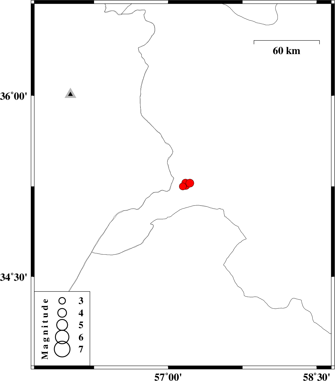 | 2016/11/15 | 04:37:10.6 | 08:07:10.6 | 35.278 | 57.218 | 14 | ML:3.7 | Khorasan(center) Province, 67 km -West of Bardeskan | ||