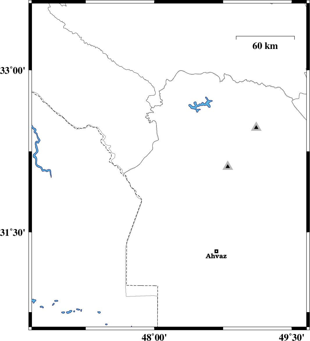 | 2016/11/14 | 23:33:03.5 | 03:03:03.5 | 32.188 | 48.067 | 14 | ML:2.8 | Khoozestan Province, 17 km -West of Shush | ||