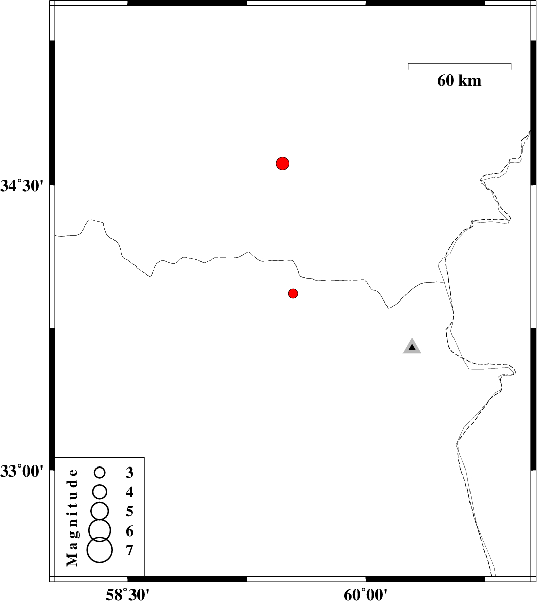 | 2016/11/23 | 13:01:51.7 | 16:31:51.7 | 33.932 | 59.541 | 12 | ML:2.7 | , 38 km North-East of Qaen | ||