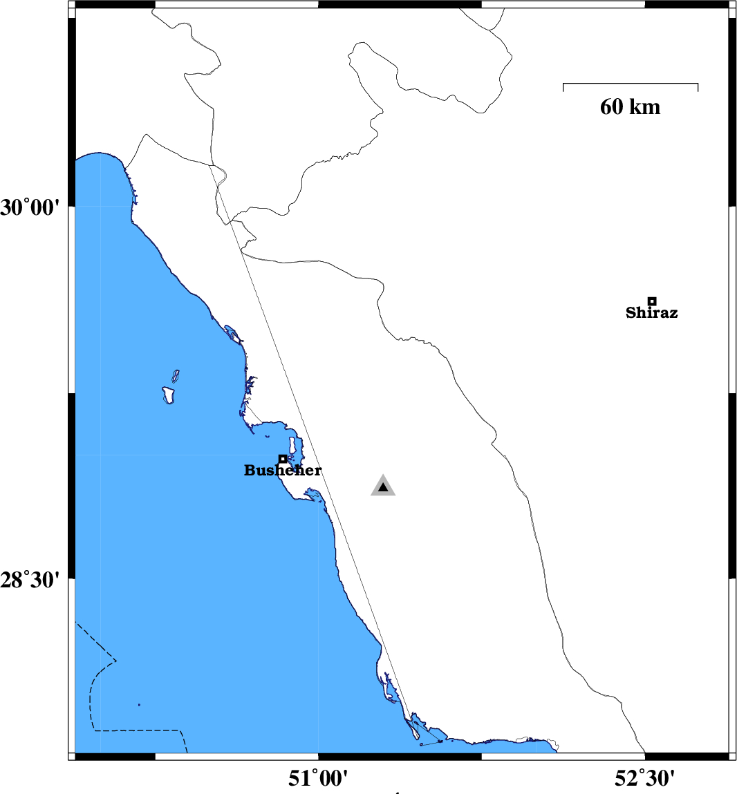 | 2016/11/23 | 23:33:27.6 | 03:03:27.6 | 29.29 | 51.384 | 6 | ML:2.9 | Bushehr Province, 18 km -East of Borazjan | ||