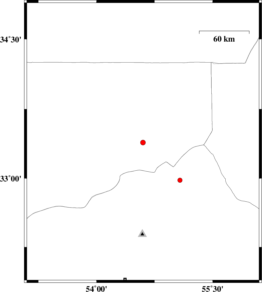 | 2016/10/31 | 09:06:33.6 | 12:36:33.6 | 32.98 | 55.078 | 11 | ML:2.7 | Yazd Province, 156 km North-West of Bafq |