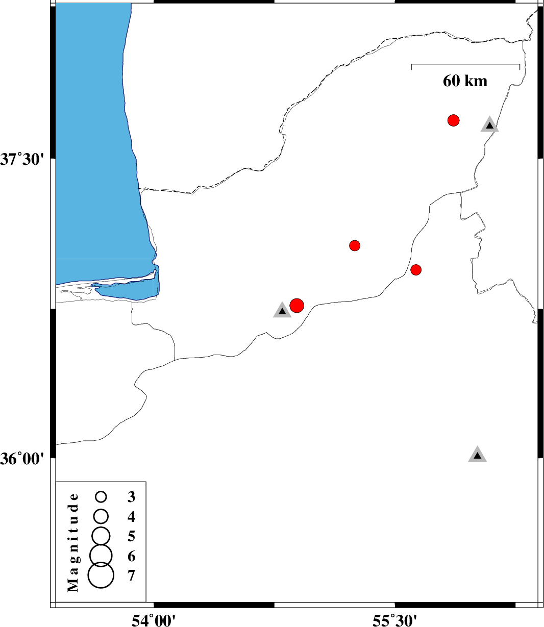 | 2016/11/05 | 18:32:34.1 | 22:02:34.1 | 37.689 | 55.864 | 7 | ML:3.2 | Golestan Province, 48 km North-East of Kalaleh |