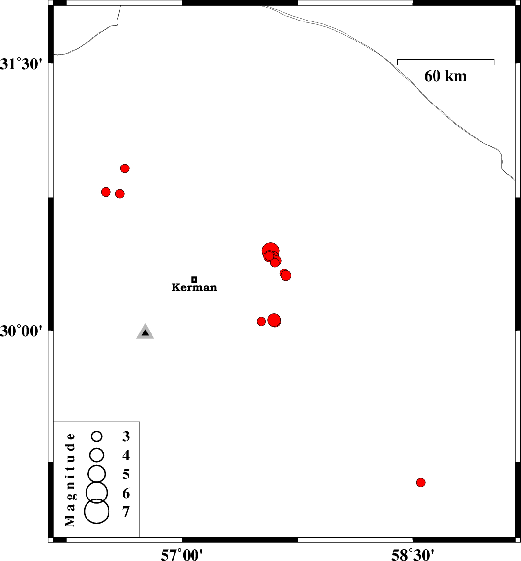 2016/11/10 13:12:11.8 16:42:11.8 30.05157.5146 ML:2.6 Kerman Province, 49 km South-East of Kerman