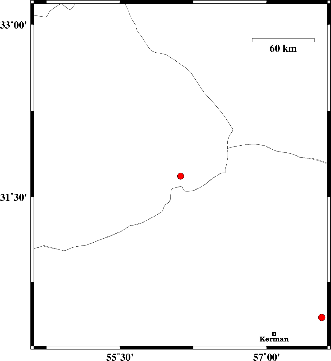 | 2016/12/06 | 13:37:57.5 | 17:07:57.5 | 30.434 | 57.564 | 14 | ML:3.1 | Kerman Province, 49 km North-East of Kerman |