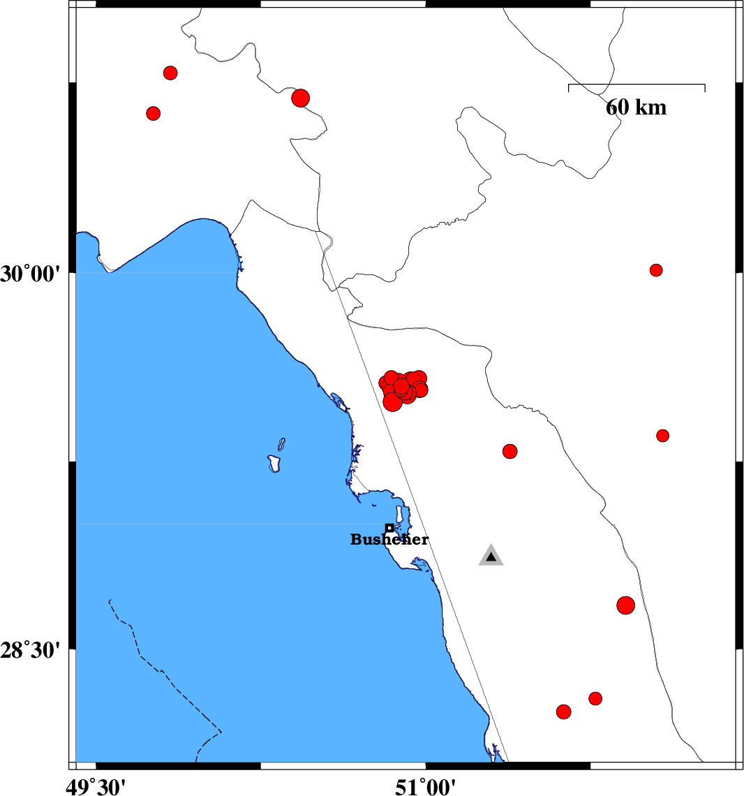 2016/12/18 17:15:00.8 20:45:00.8 29.52150.9119 ML:4 Bushehr Province, 39 km -East of Bandar-e genaveh