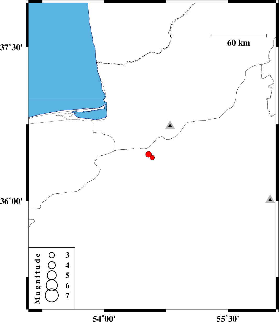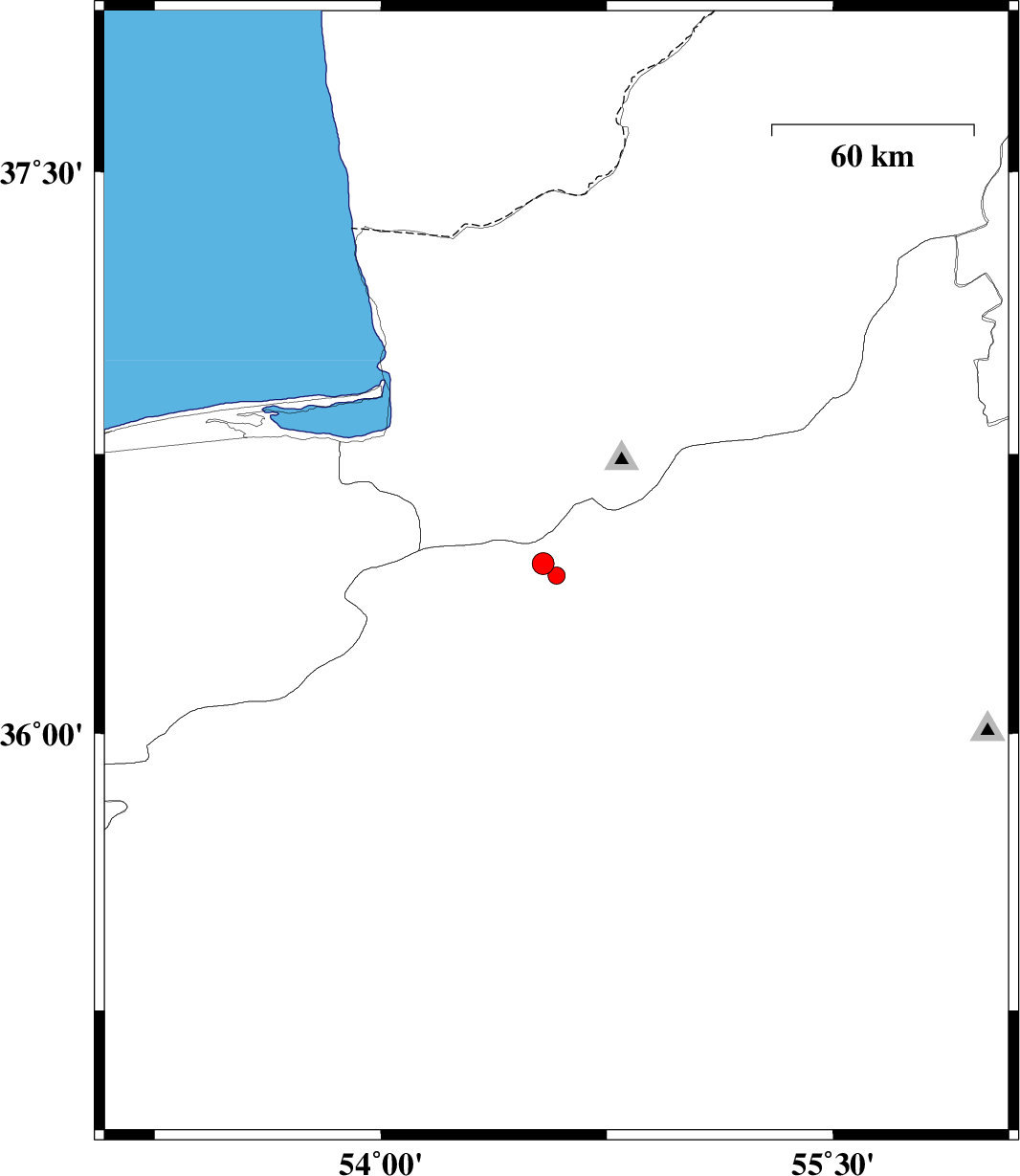 | 2016/12/23 | 22:59:07.2 | 02:29:07.2 | 36.457 | 54.539 | 14 | ML:3.2 | Semnan Province, 39 km -West of Shahrud | ||