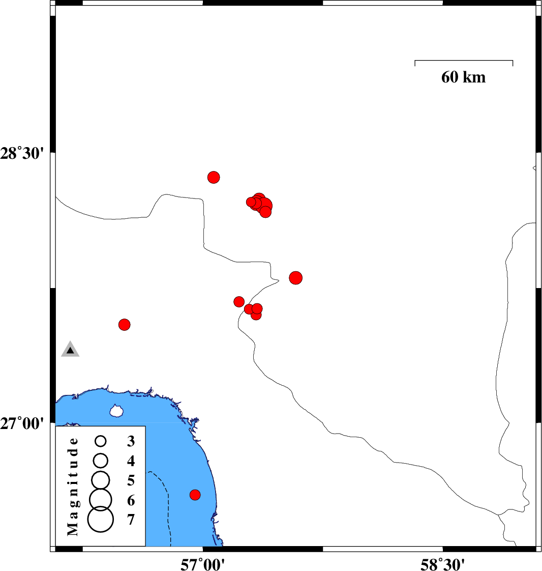 Oman Sea, 63 km South-West of Minab | |