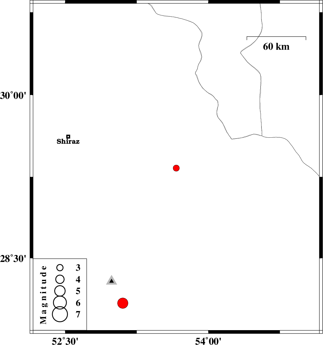 | 2017/01/06 | 02:33:27.7 | 06:03:27.7 | 28.083 | 53.104 | 15 | ML:4.9 | Fars Province, 43 km South of Qir va Karzin |
