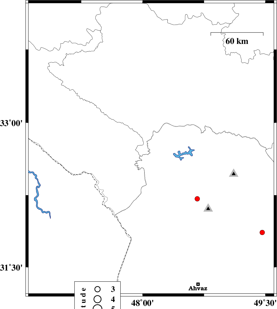 | 2017/01/22 | 07:19:17.6 | 10:49:17.6 | 32.723 | 48.104 | 14 | ML:2.7 | Khoozestan Province, 37 km North-West of Andimeshk | ||
