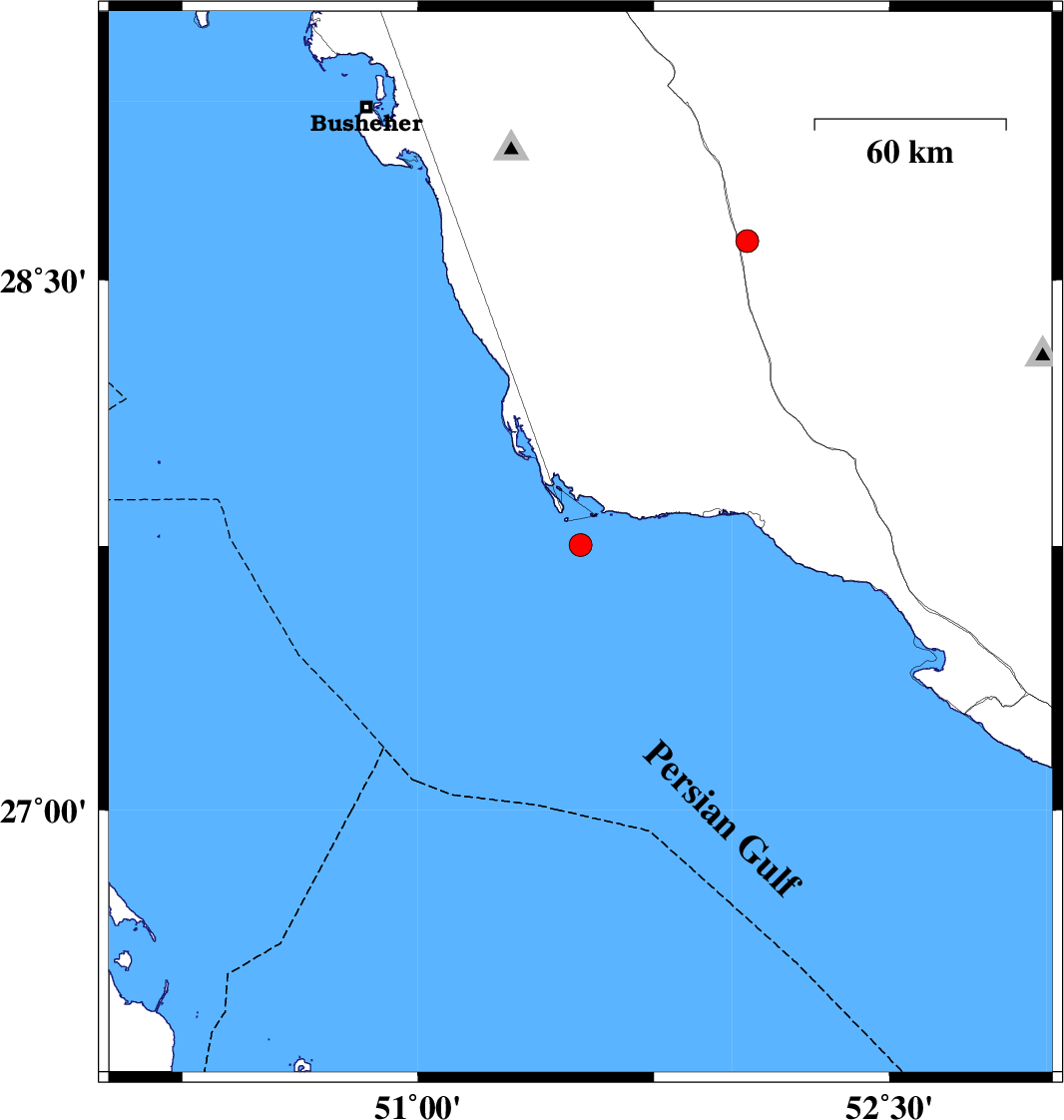 2017/01/25 | 10:00:25.5 | 13:30:25.5 | 27.752 | 51.517 | 27 | ML:3.2 | Persian Gulf, 54 km -West of Bandar-e kangan | ||