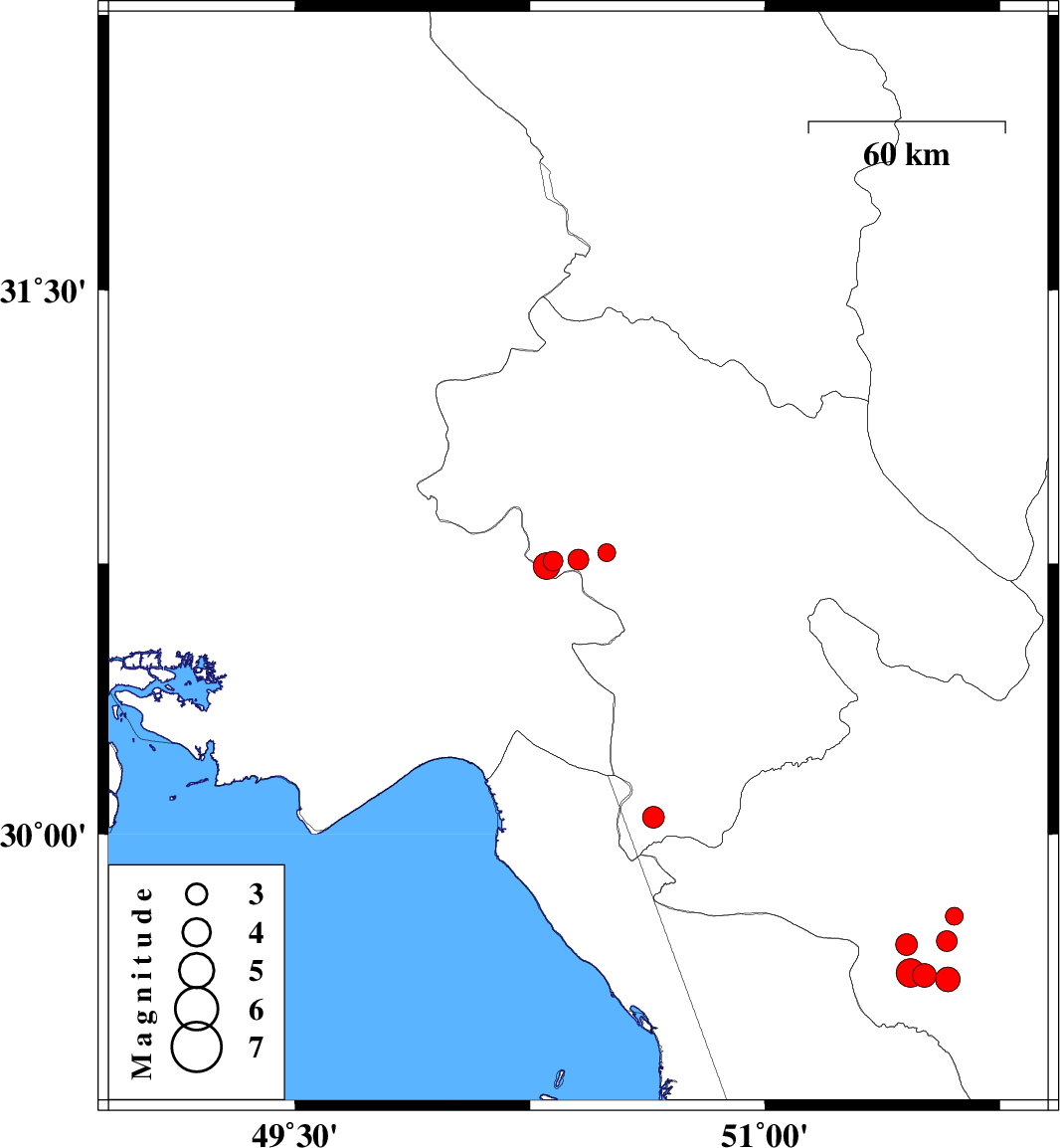2017/01/26 07:48:15.5 11:18:15.5 30.74350.30215 ML:3.8 Kohkiluieh va boyerahmad Province, 17 km North of Behbahan