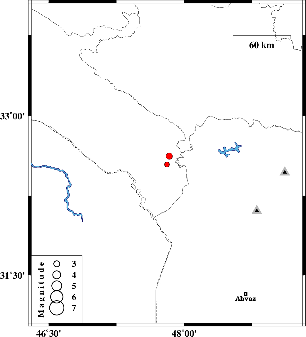 2017/01/26 | 22:42:25.3 | 02:12:25.3 | 32.621 | 47.833 | 14 | ML:3.3 | Ilam Province, 54 km -East of Dehloran |