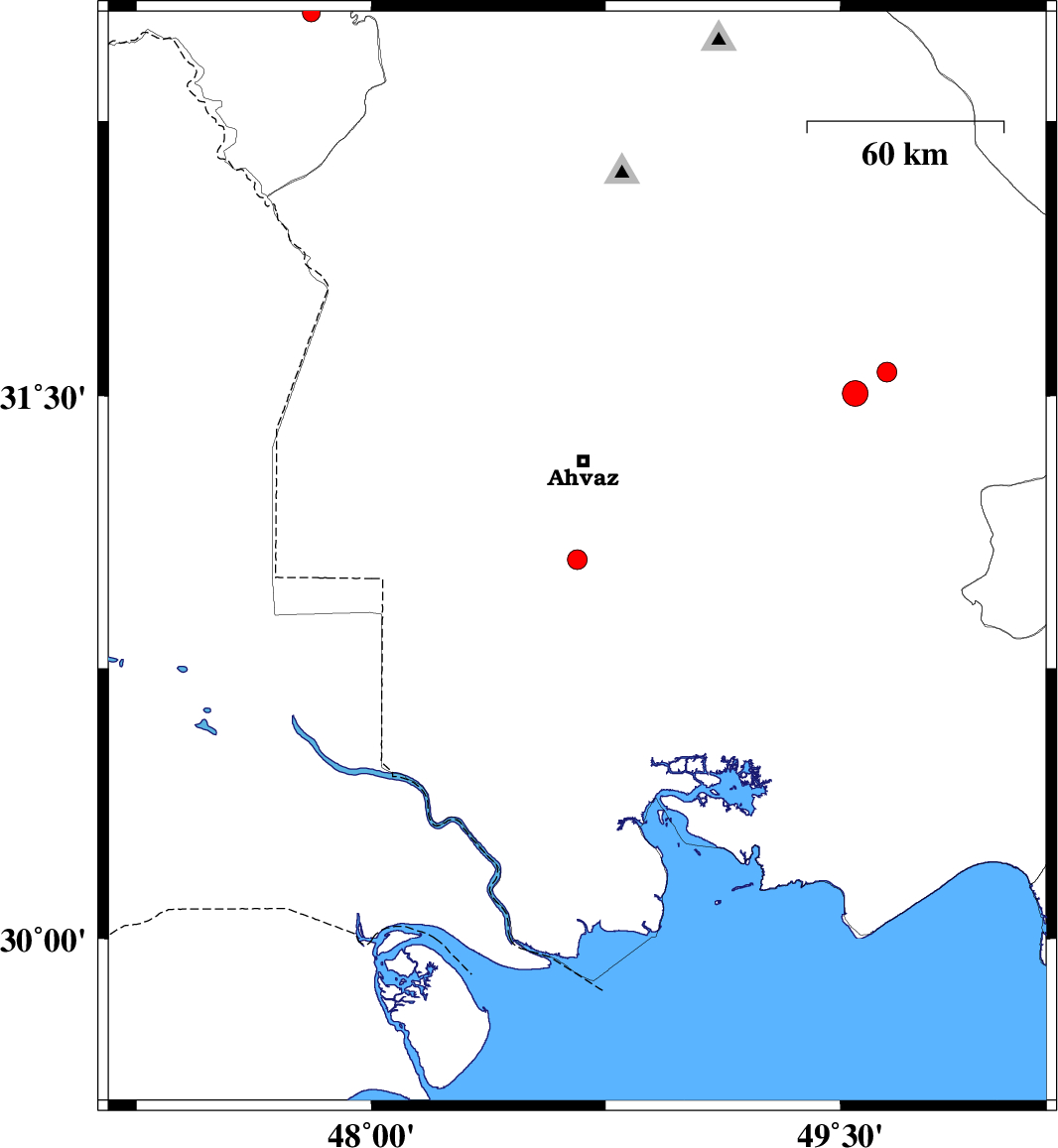| 2017/02/05 | 02:19:46.7 | 05:49:46.7 | 31.05 | 48.659 | 14 | ML:2.8 | Khoozestan Province, 30 km South of Ahvaz | ||