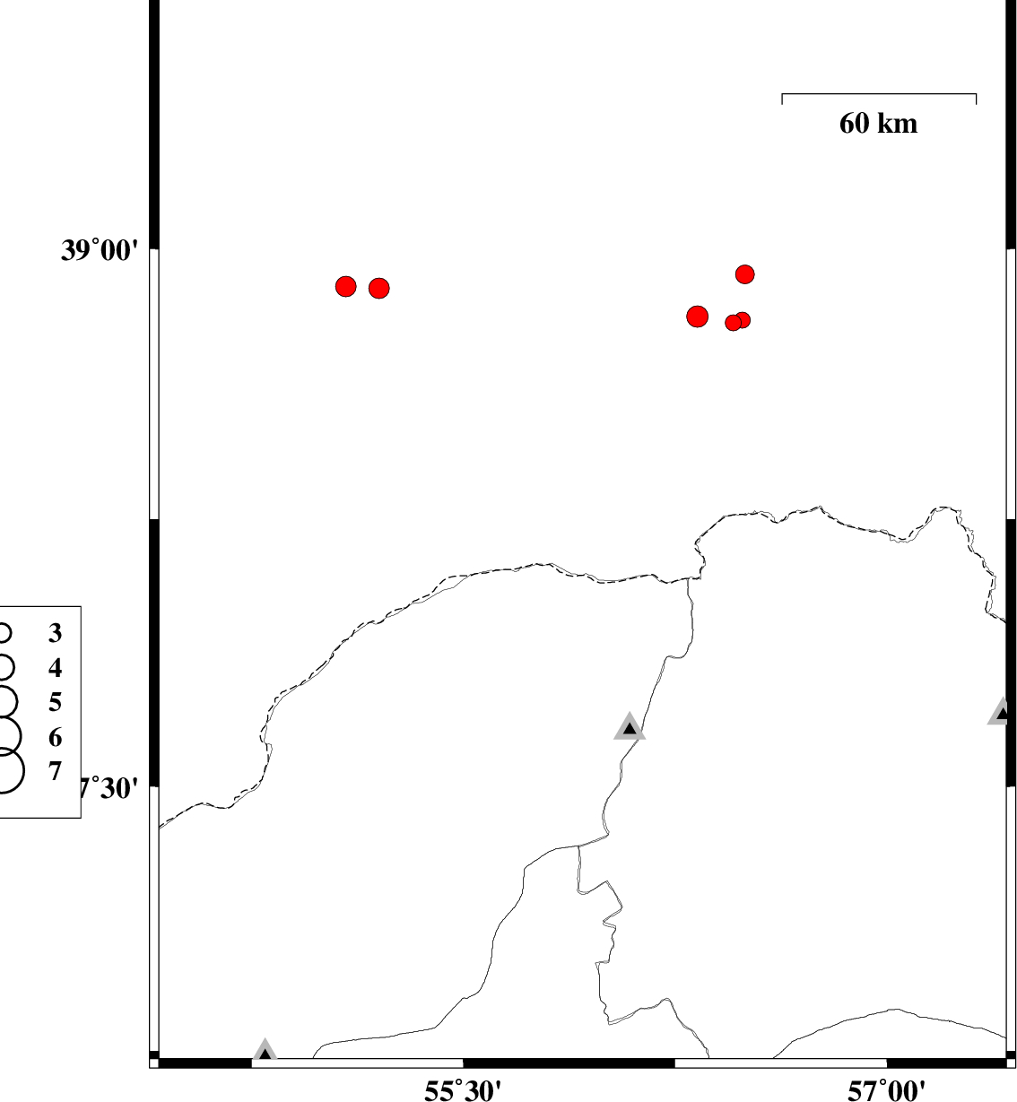 | 2017/02/07 | 00:52:55.3 | 04:22:55.3 | 39.197 | 54.773 | 16 | ML:3.1 | Turkmenistan | ||