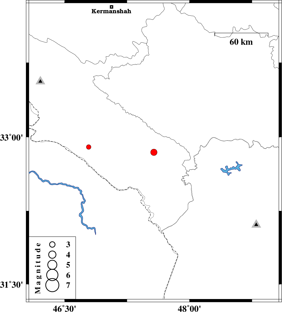 | 2017/02/12 | 18:25:41.5 | 21:55:41.5 | 32.9 | 46.79 | 14 | ML:2.6 | Ilam Province, 50 km North-West of Dehloran |