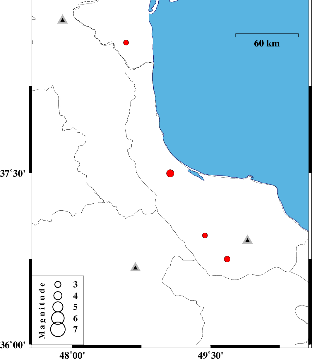 | 2017/02/15 | 17:38:24.3 | 21:08:24.3 | 37.496 | 49.062 | 22 | ML:3.6 | Gilan Province, 10 km of Rezvanshahr | ||