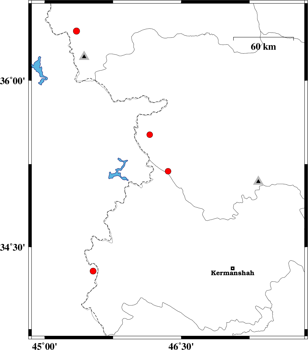 2017/03/01 | 01:50:34.6 | 05:20:34.6 | 35.187 | 46.355 | 14 | ML:2.9 | Kurdistan Province, 15 km North of Paveh | ||