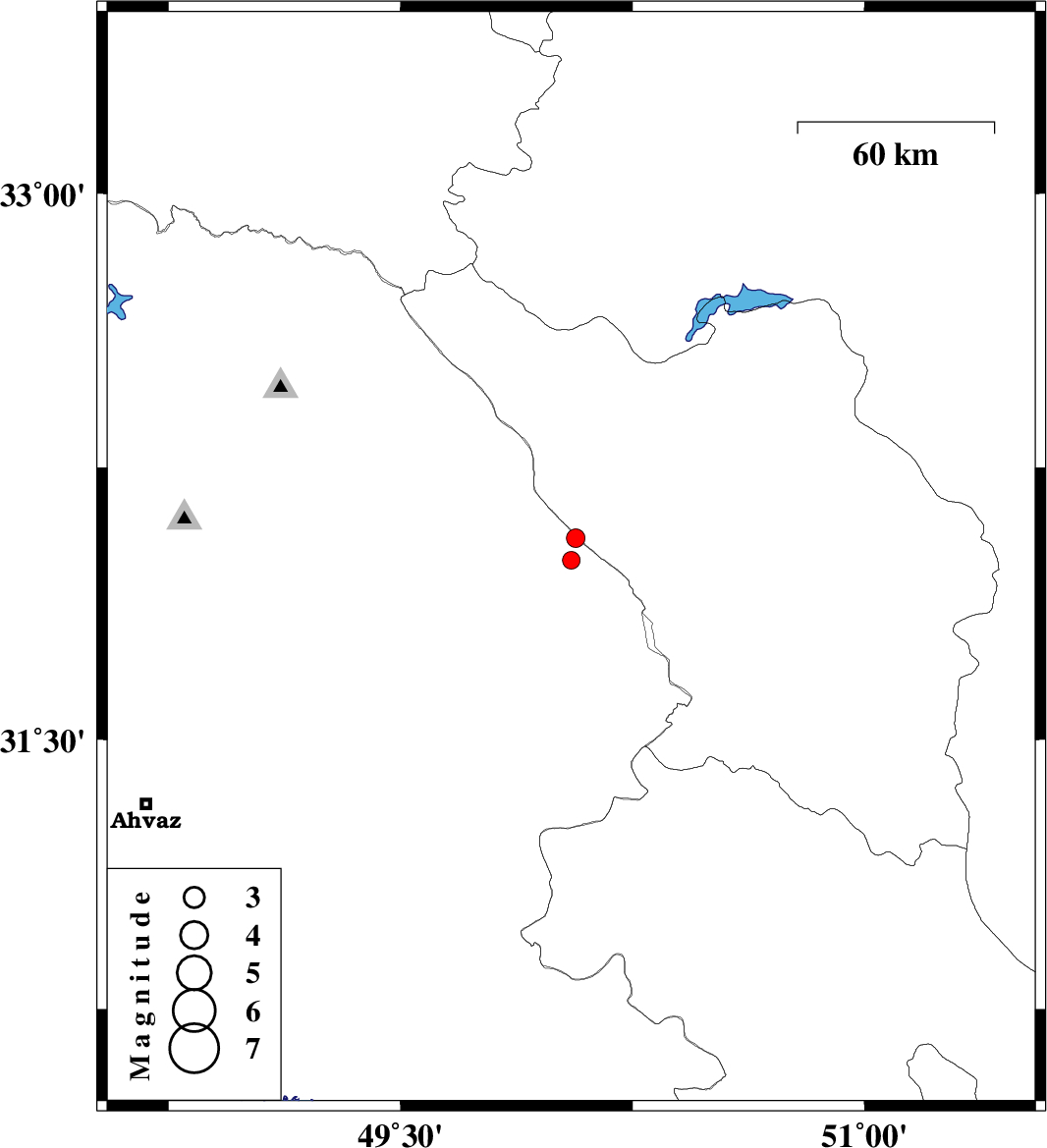 | 2017/03/02 | 07:48:14.8 | 11:18:14.8 | 31.995 | 50.052 | 15 | ML:2.6 | Khoozestan Province, 25 km North-East of Izeh | ||