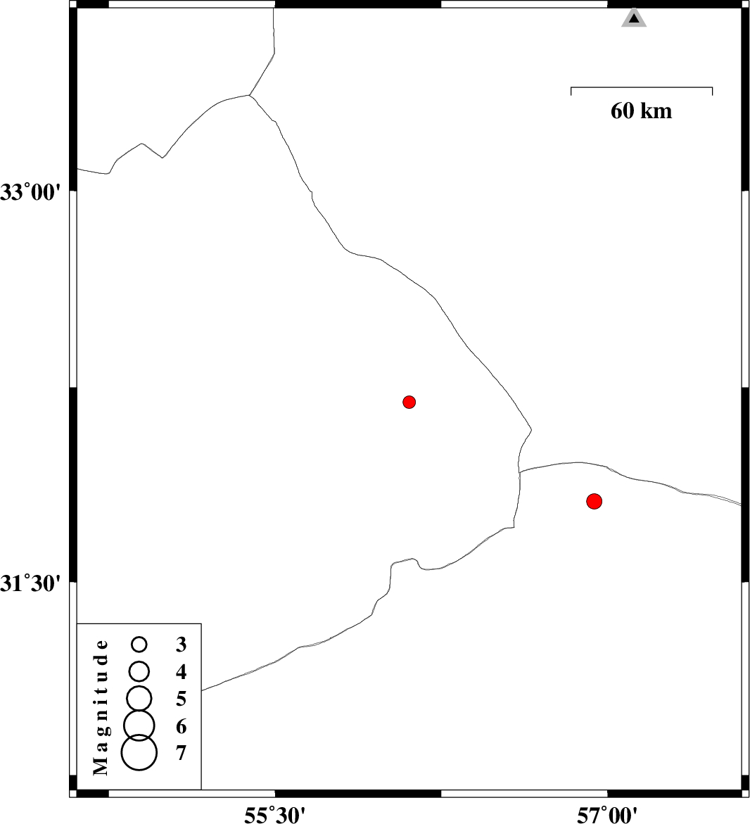 | 2017/02/27 | 11:12:43.1 | 14:42:43.1 | 31.811 | 56.94 | 14 | ML:3.1 | Kerman Province, 62 km North-East of Ravar |