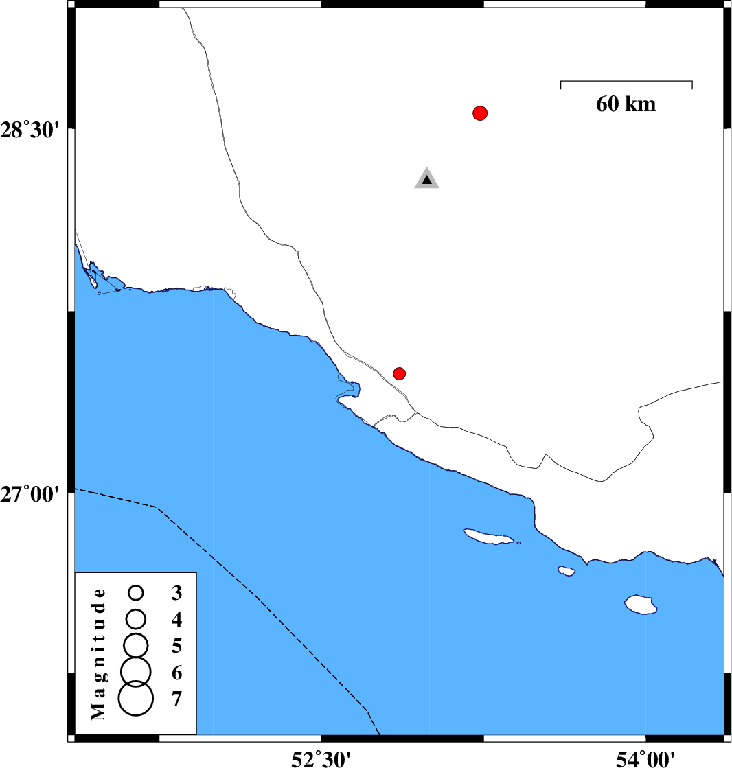 2017/03/02 | 16:29:47.9 | 19:59:47.9 | 27.493 | 52.86 | 16 | ML:2.5 | Fars Province, 7 km of Mehr | ||