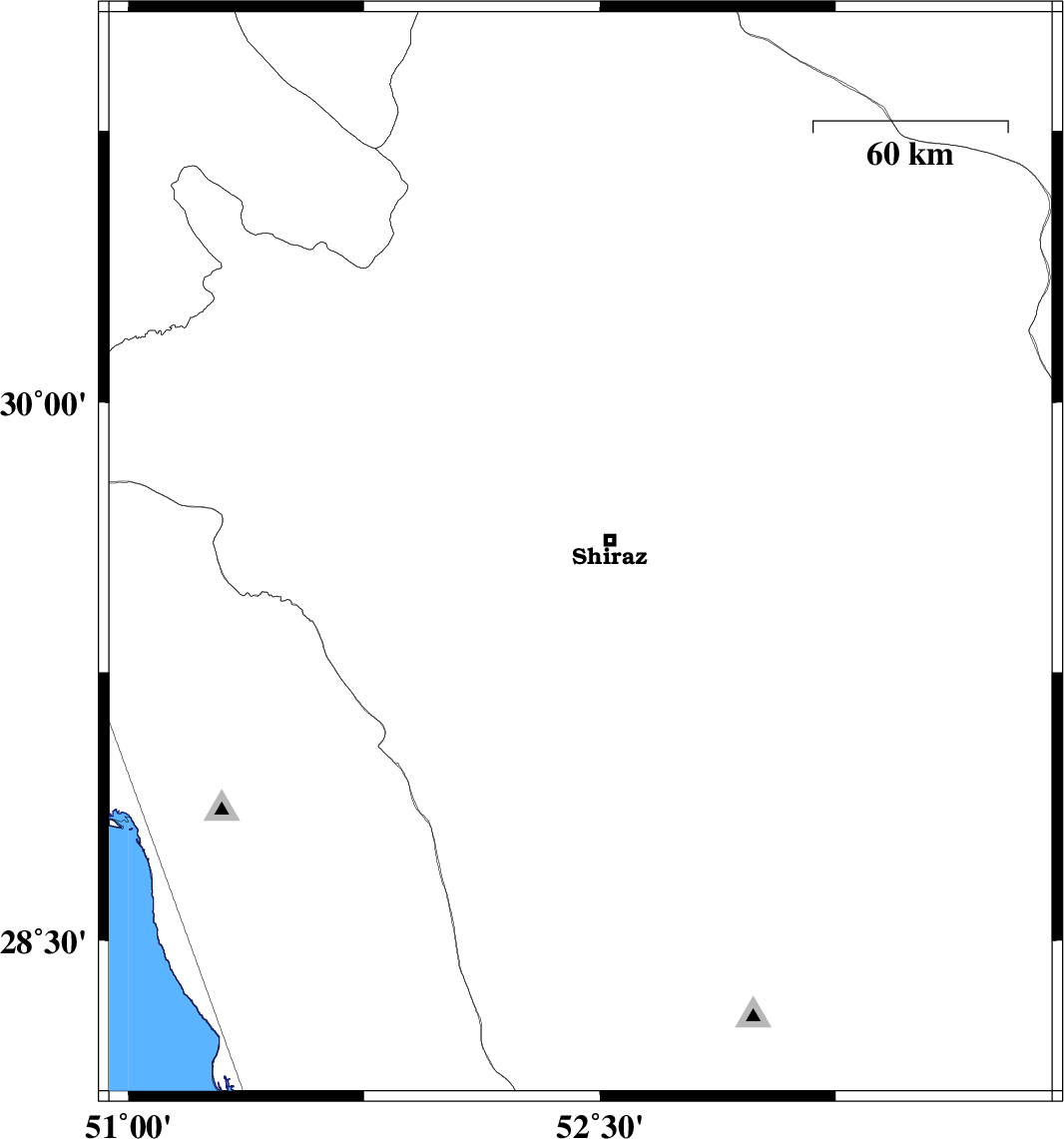 2017/03/02 | 22:23:13.3 | 01:53:13.3 | 29.577 | 52.438 | 14 | ML:2.7 | Fars Province, 10 km of Shiraz | ||