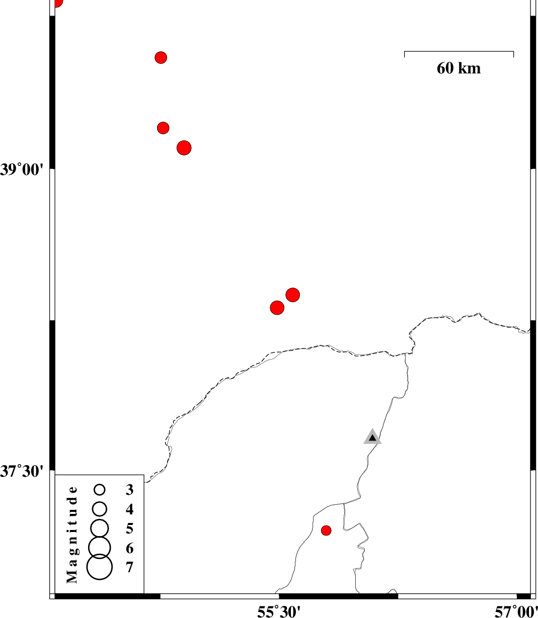 | 2017/02/12 | 04:48:47.2 | 08:18:47.2 | 39.201 | 54.767 | 17 | ML:3.4 | Turkmenistan |