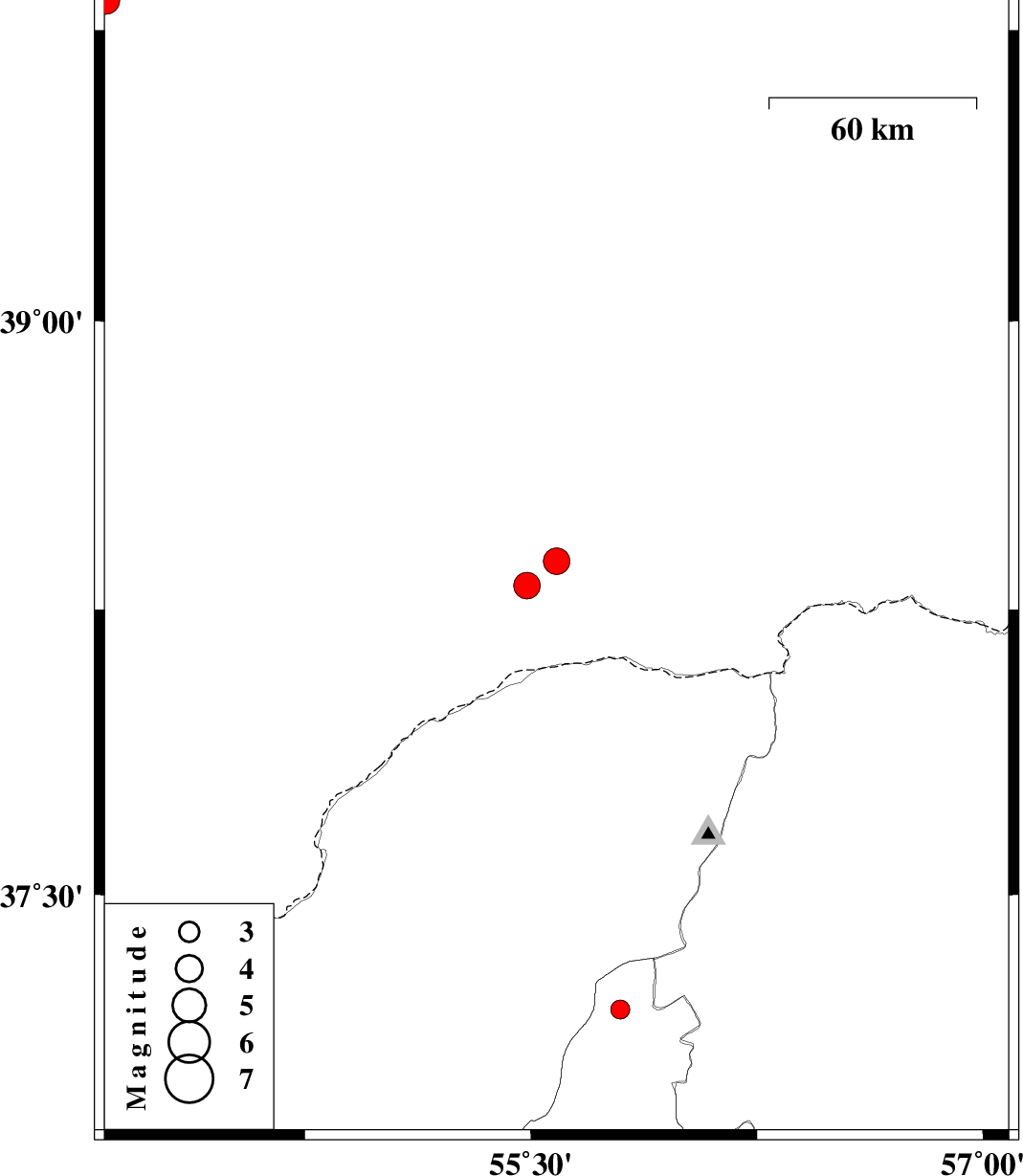 | 2017/03/10 | 01:33:39.6 | 05:03:39.6 | 37.195 | 55.797 | 8 | ML:2.8 | Semnan Province, 36 km -East of Minodasht |