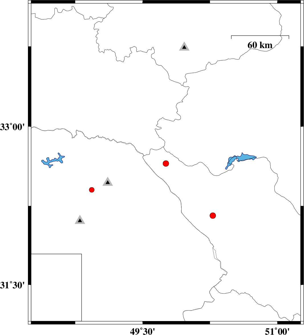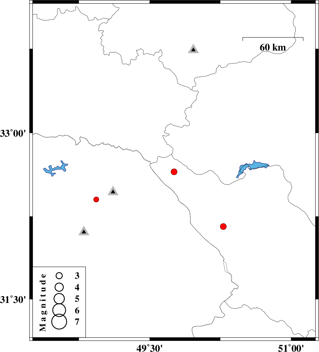 | 2017/03/14 | 06:13:48.4 | 09:43:48.4 | 32.651 | 49.759 | 14 | ML:2.9 | Chaharmahal Bakhtiari Province, 40 km North-West of Chelgard | ||
