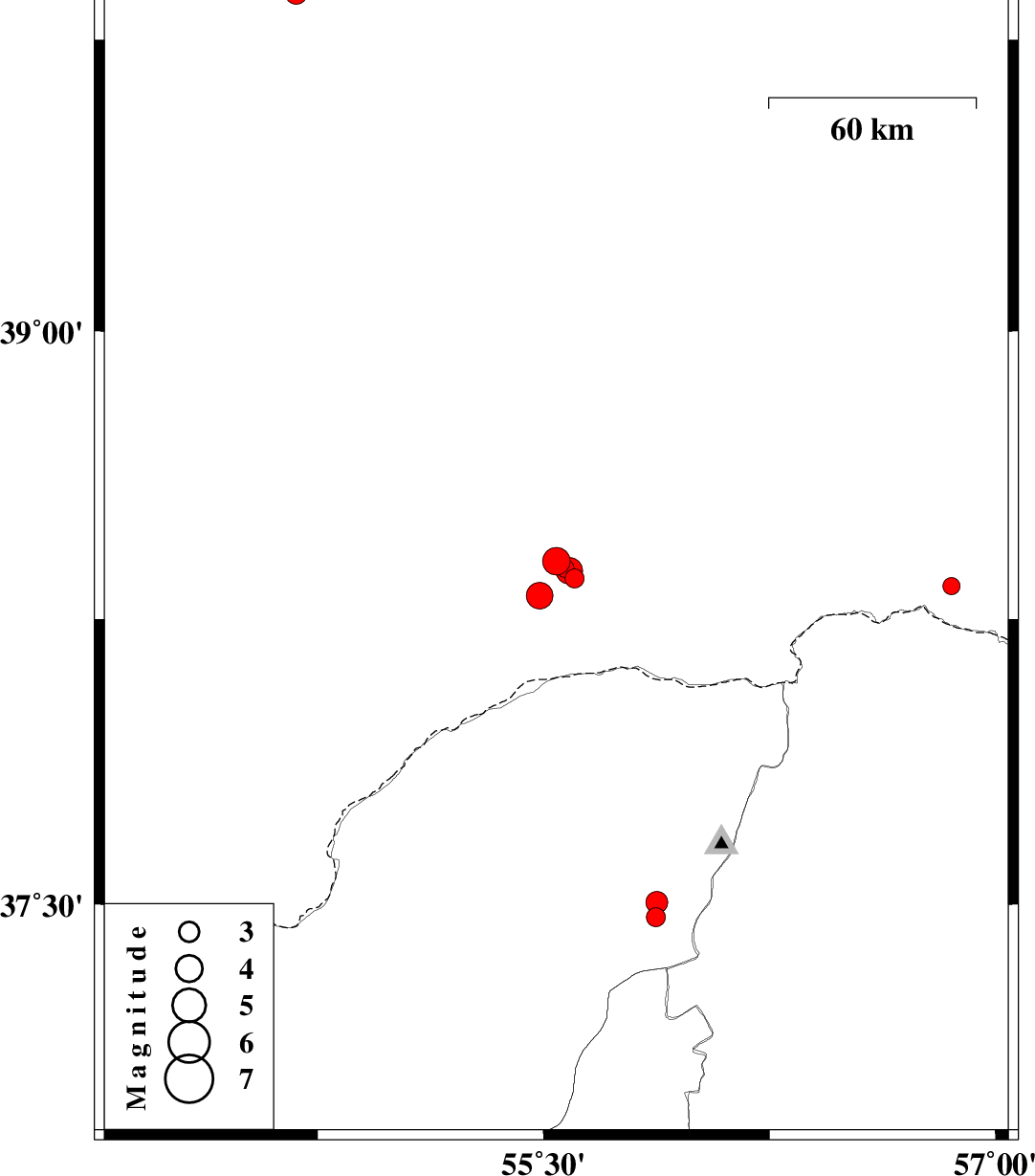 | 2017/03/16 | 00:48:25.7 | 04:18:25.7 | 37.505 | 55.876 | 16 | ML:3.2 | Golestan Province, 37 km North-East of Kalaleh | ||