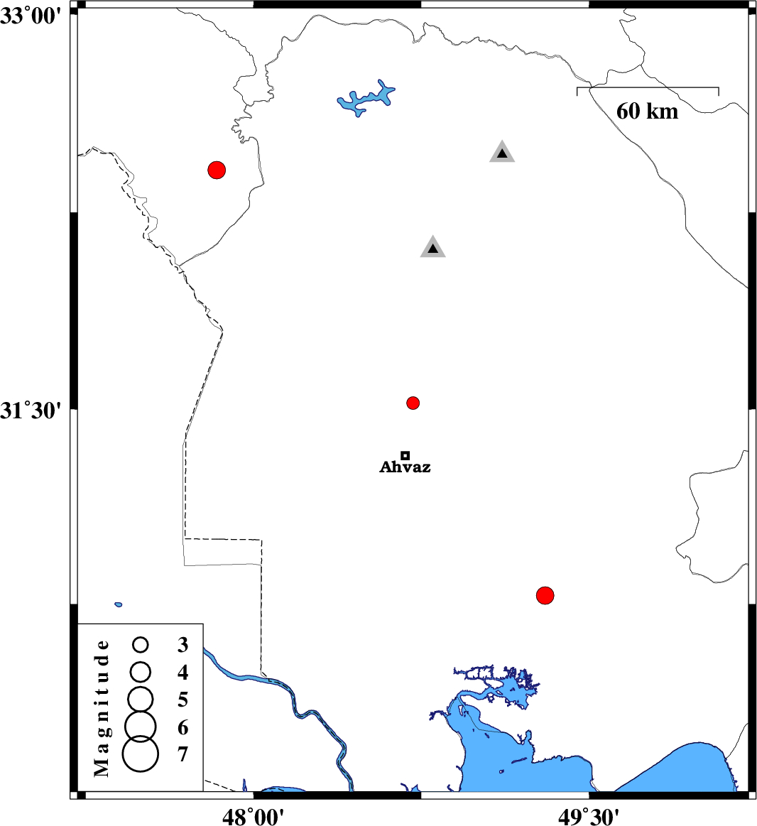 | 2017/03/27 | 01:56:53.6 | 06:26:53.6 | 31.523 | 48.713 | 15 | ML:2.5 | Khoozestan Province, 23 km North of Ahvaz | ||