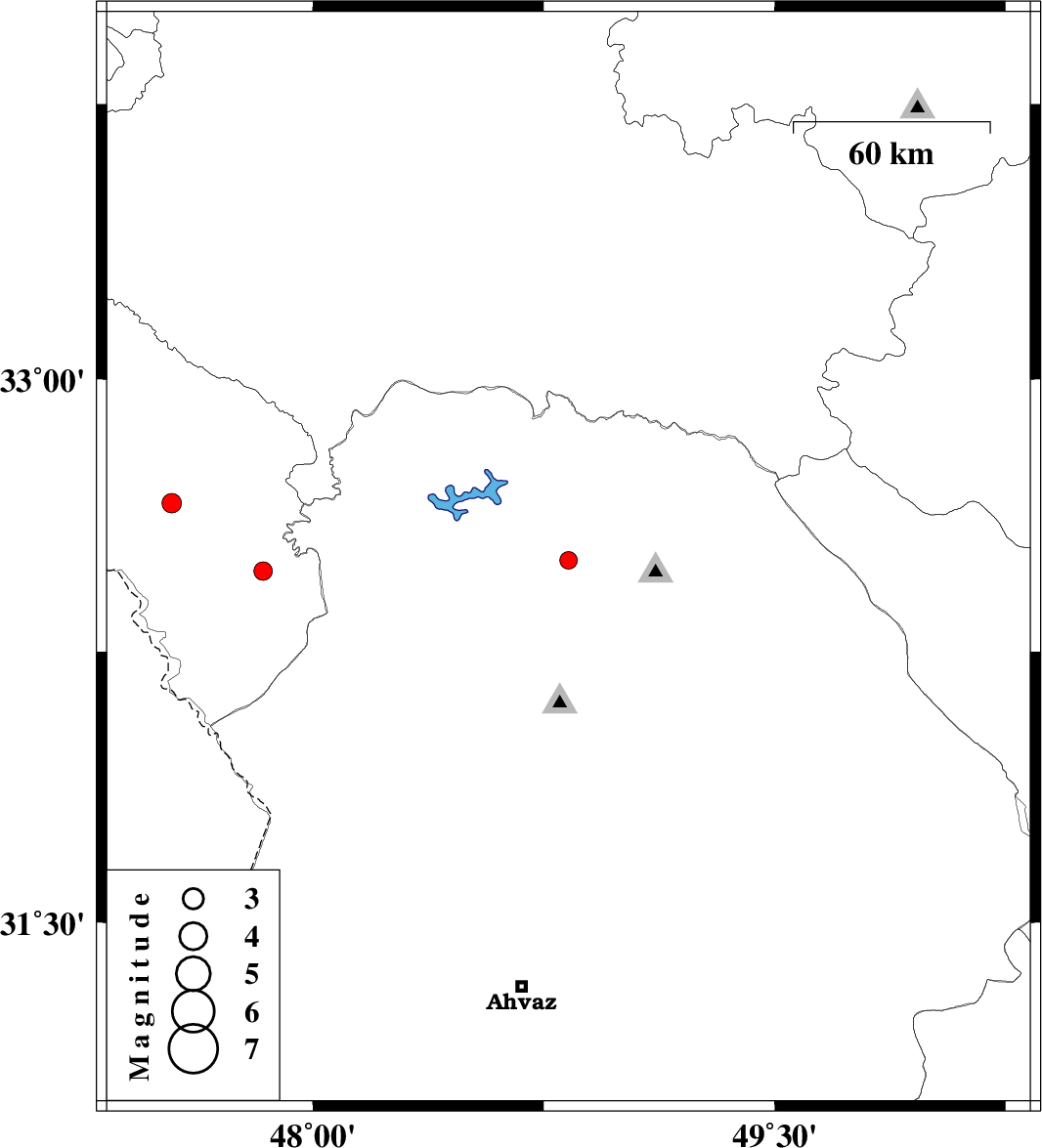 | 2017/04/09 | 13:34:48.7 | 18:04:48.7 | 32.502 | 48.83 | 14 | ML:2.5 | Khoozestan Province, 29 km North-West of Lali | ||