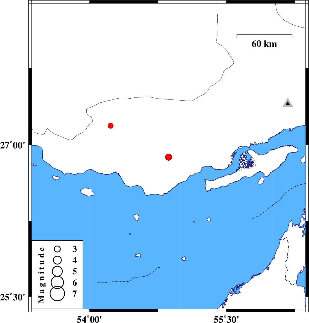 | 2017/04/15 | 04:37:21.5 | 09:07:21.5 | 26.877 | 54.866 | 17 | ML:3.3 | Hormozgan Province, 39 km North of Bandar-e lengeh | ||