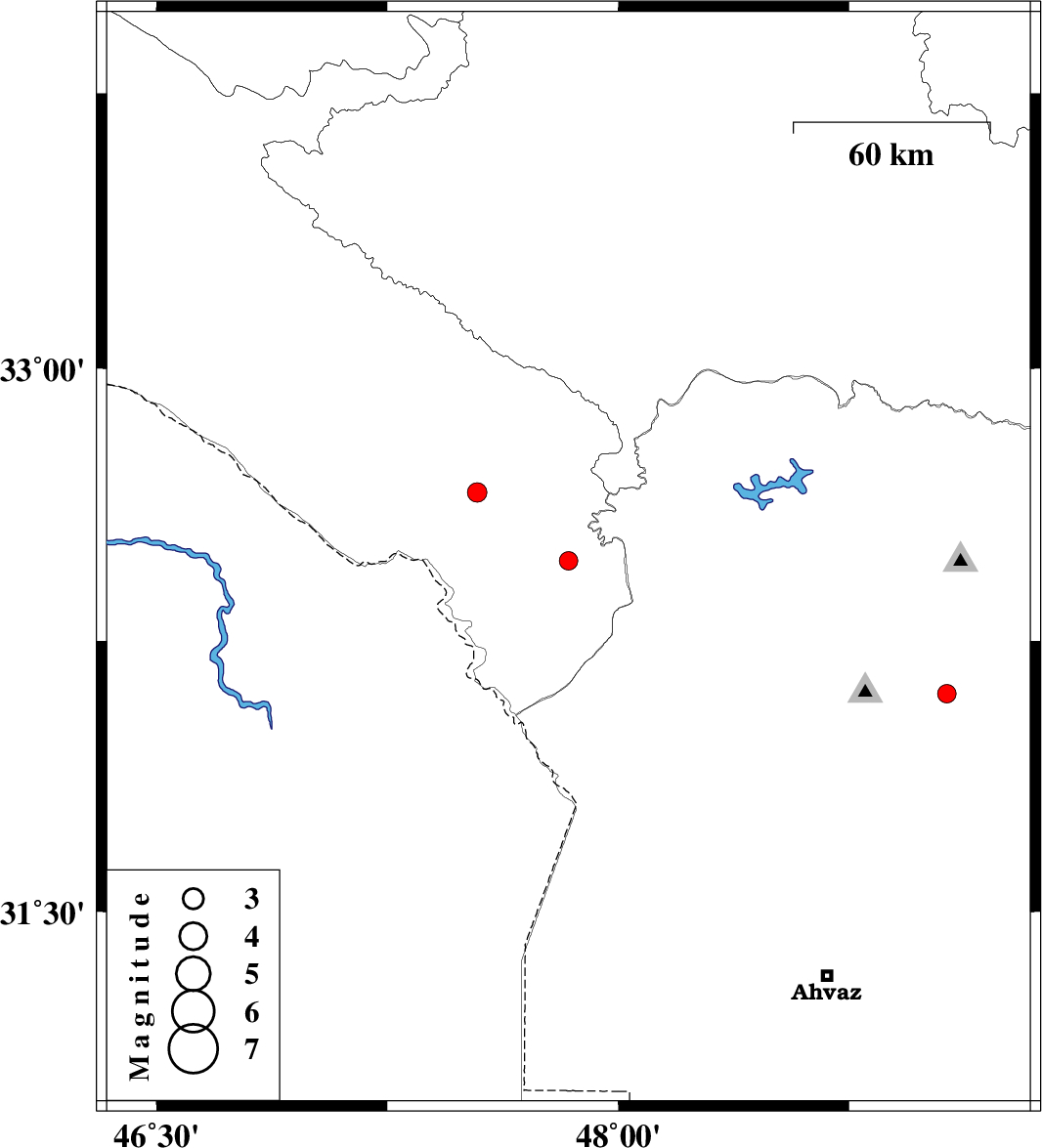 | 2017/04/02 | 18:43:00.4 | 23:13:00.4 | 32.66 | 47.541 | 15 | ML:2.8 | Ilam Province, 27 km -East of Dehloran | ||