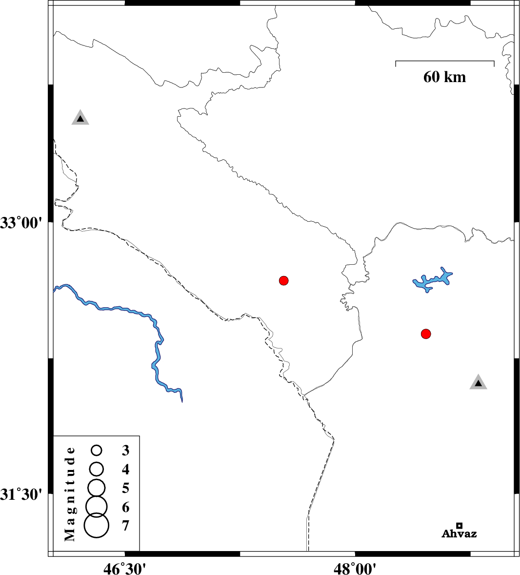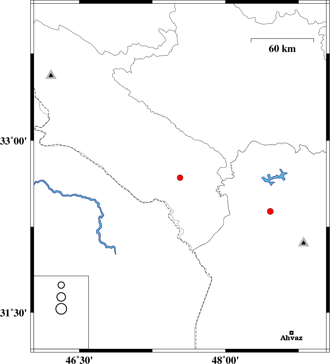 | 2017/04/21 | 17:32:43.4 | 22:02:43.4 | 32.678 | 47.534 | 14 | ML:2.7 | Ilam Province, 26 km -East of Dehloran | ||
