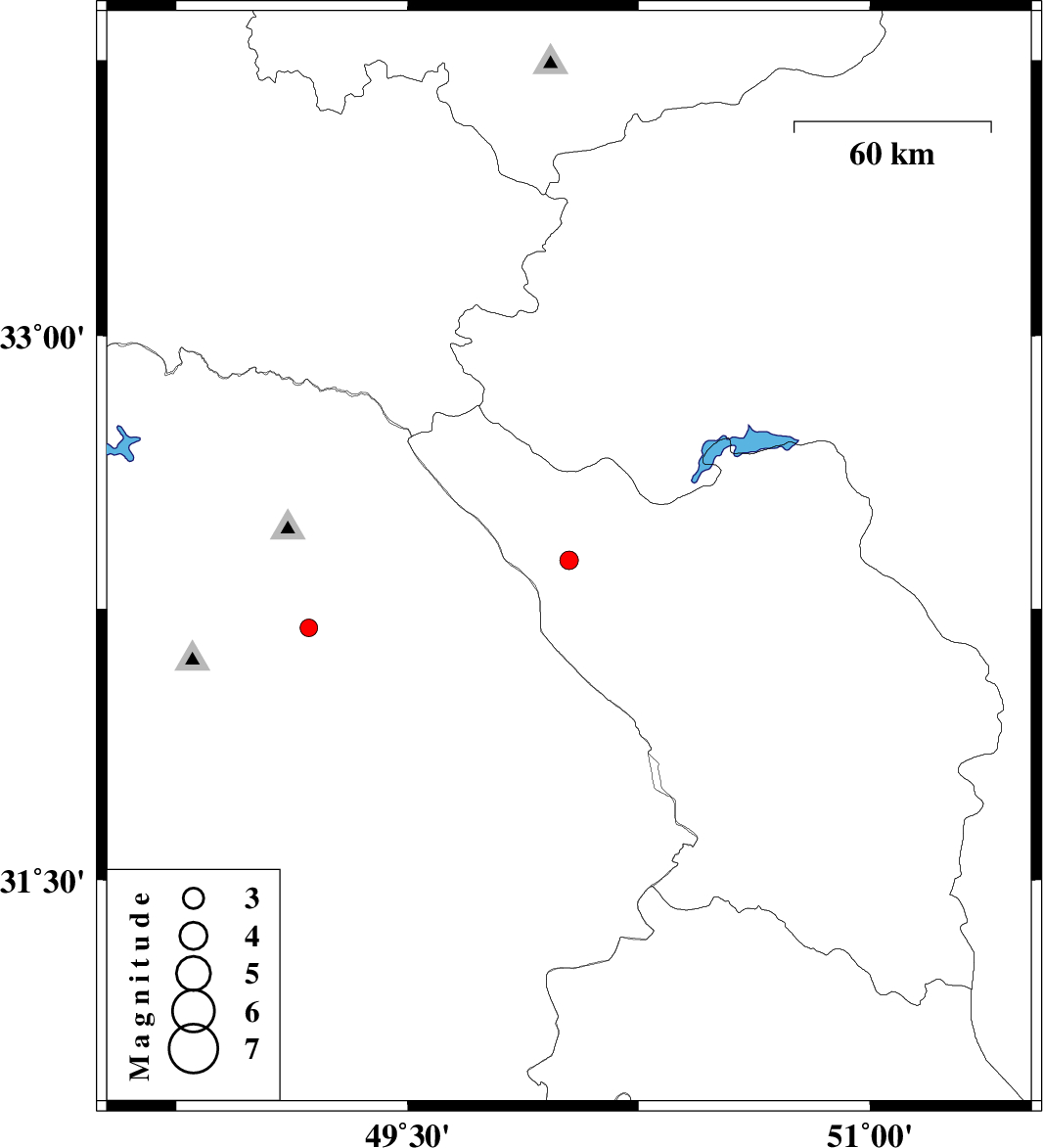 2017/04/22 | 07:49:42.2 | 12:19:42.2 | 32.384 | 50.024 | 14 | ML:2.7 | Chaharmahal Bakhtiari Province, 13 km of Chelgard | ||